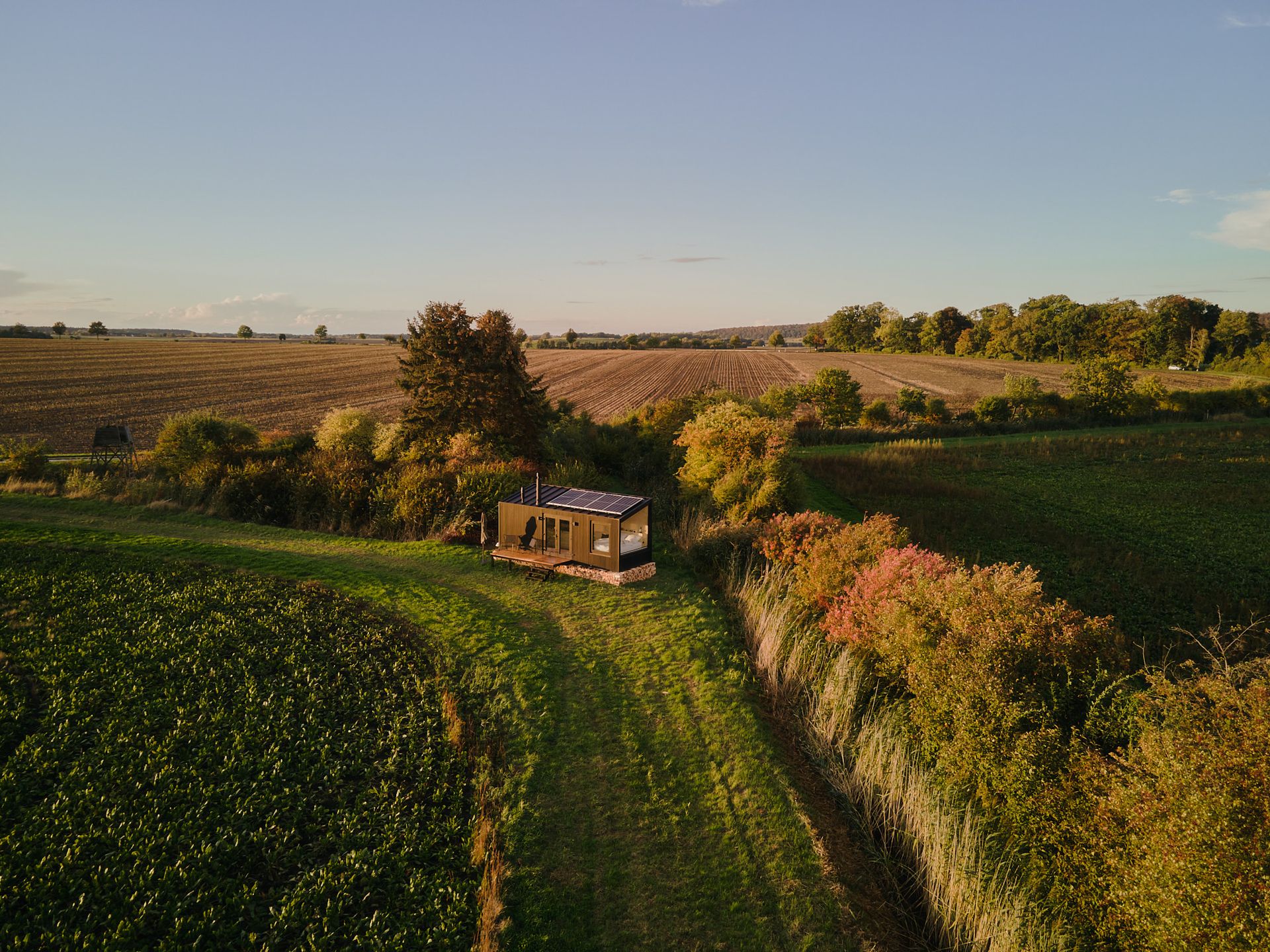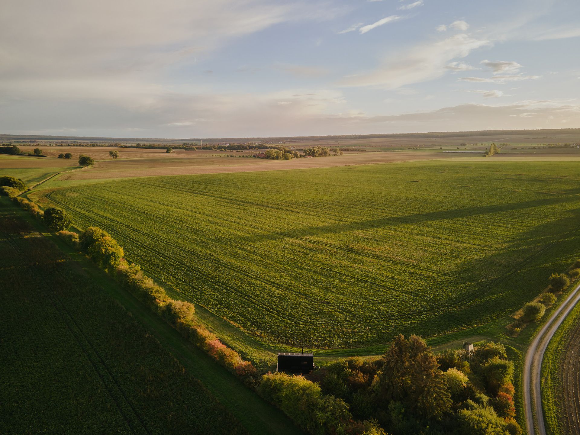Nahe eines malerischen Landguts gelegen, erstreckt sich dieser Standort zwischen dichten Büschen und Sträuchern, über Ackerland und grüne Wiesen hinweg.