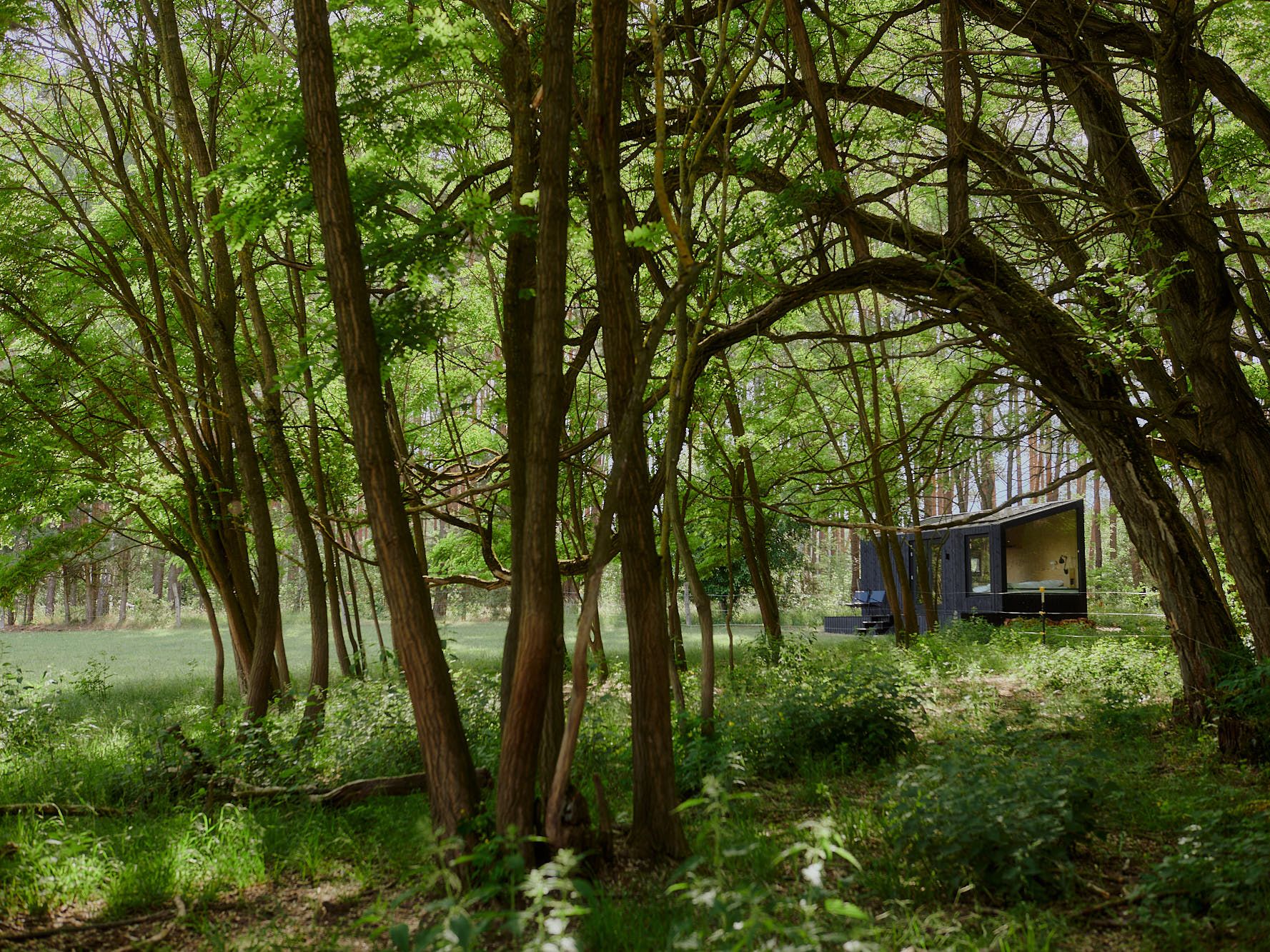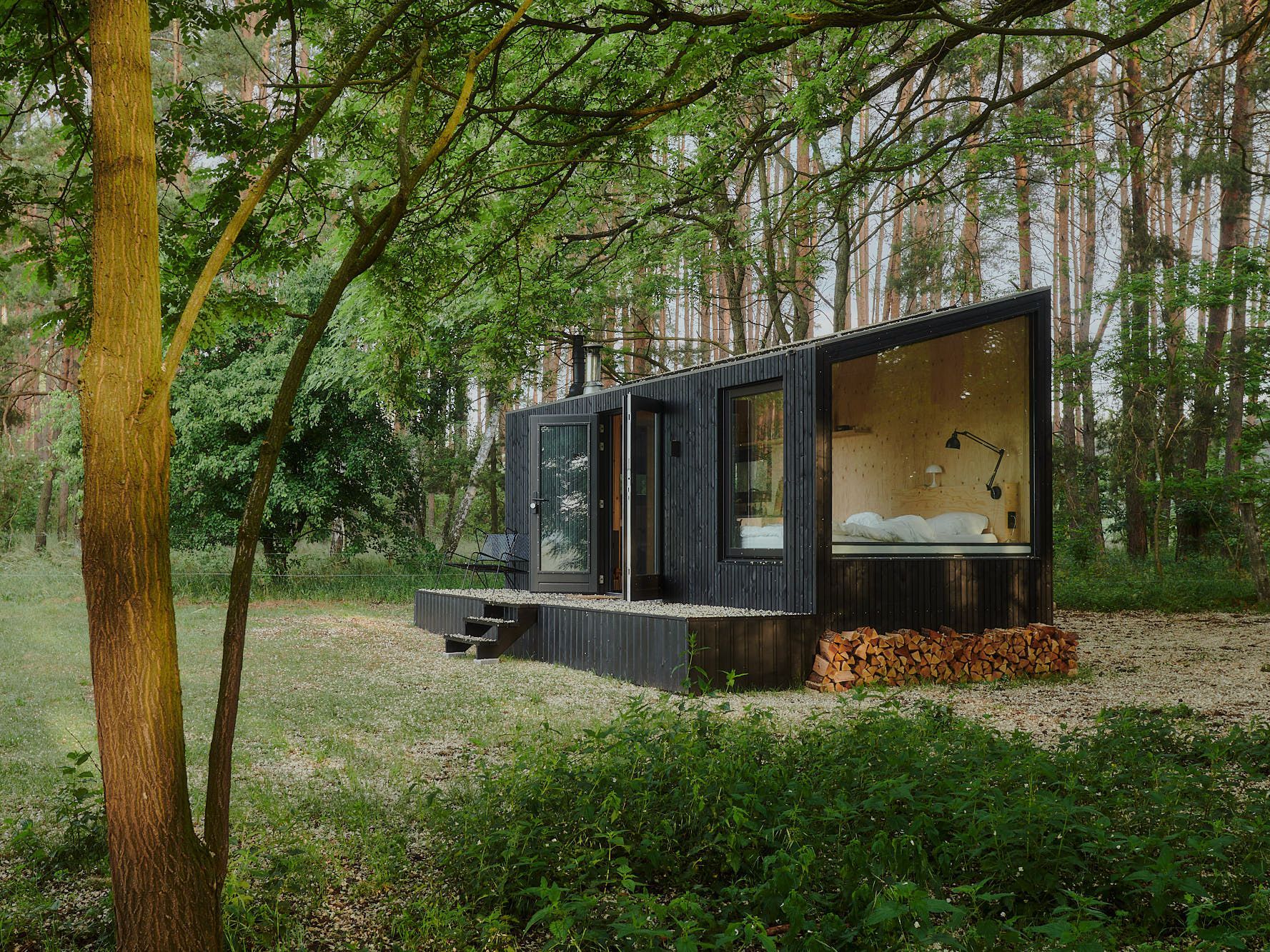 Direkt am Rande eines Waldes gelegen, blickst du von deiner Cabin in das Dickicht und auf die hohen, sich wiegenden Baumwipfel.