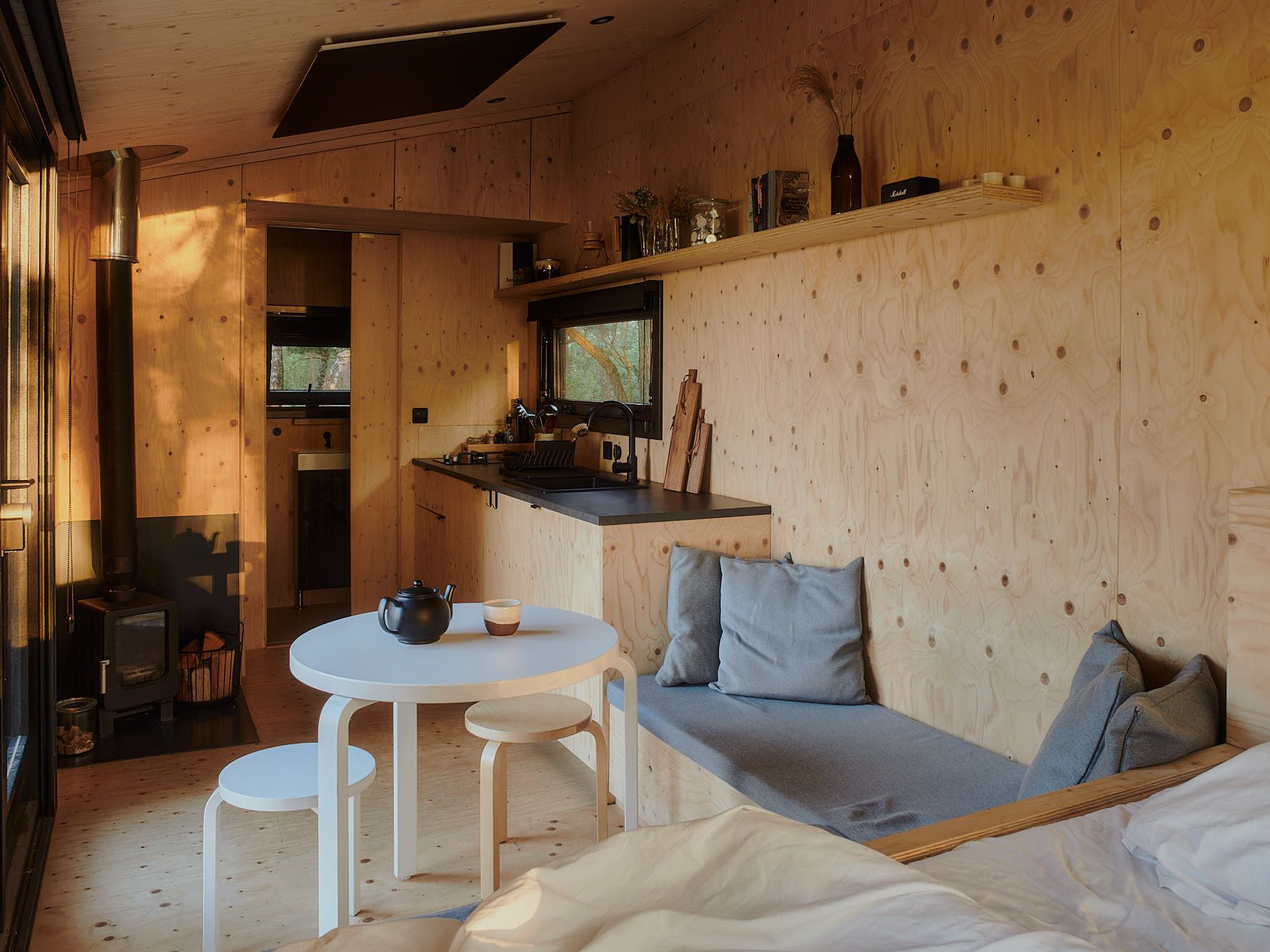 In unseren Cabins findest du alles Wesentliche für deinen Aufenthalt in der Natur. Die Cabin ist mit einem Holzofen, gemütlichen Decken, einer Wärmflasche und Tee ausgestattet, mit denen du dich auch an kälteren Tagen warm halten kannst – wir empfehlen, zusätzlich warme Kleidung wie kuschelige Socken, dicke Pullover und einen Regenmantel für Regentage einzupacken. Denke außerdem bitte an festes Schuhwerk und Gummistiefel, da die Wiesen und Felder ringsherum in den kühlen Monaten feucht und matschig sein können. Extra-Ausstattung wie Fahrräder, Grill oder Feuerschale kannst du (je nach Standort) hinzubuchen.