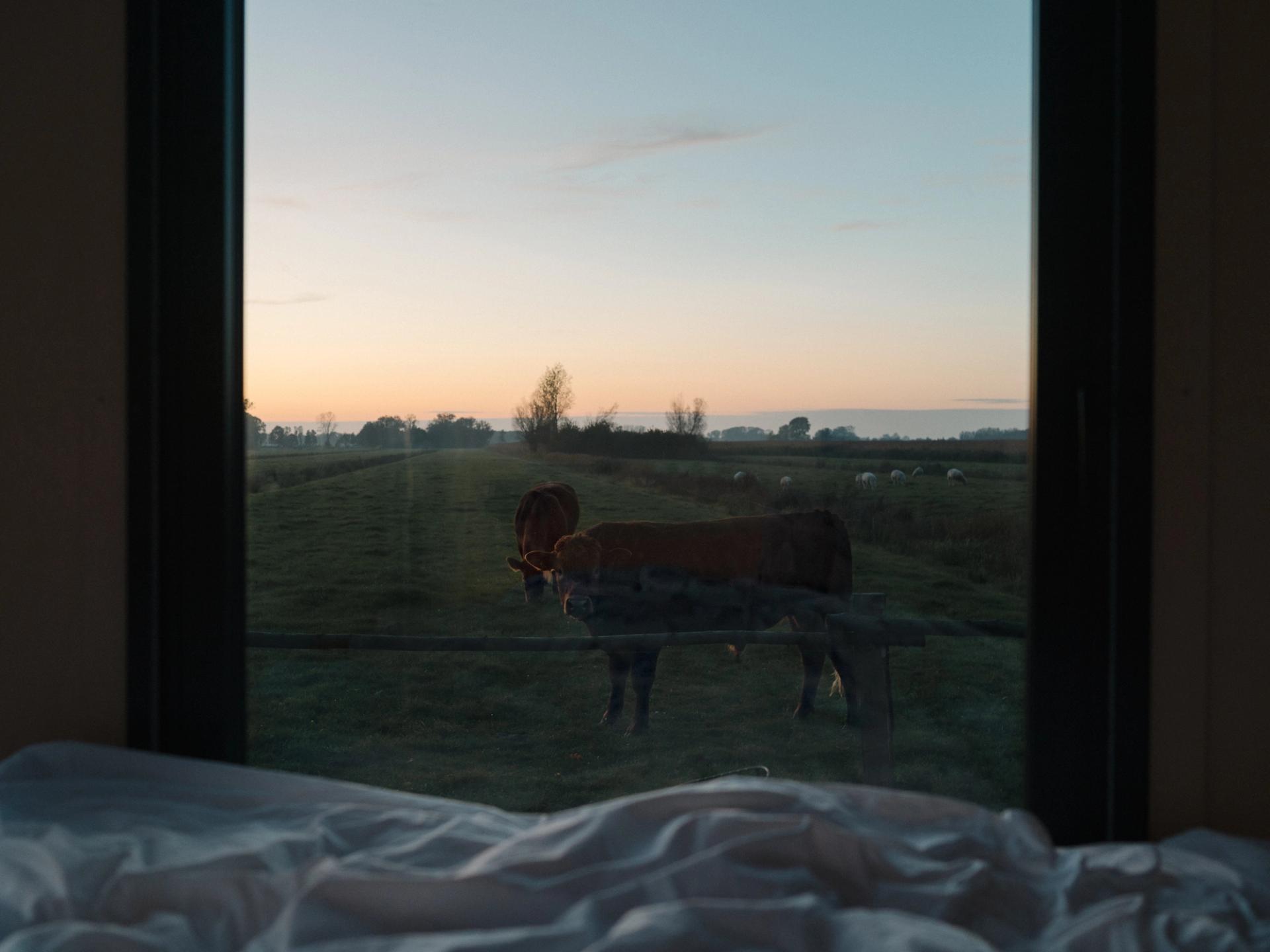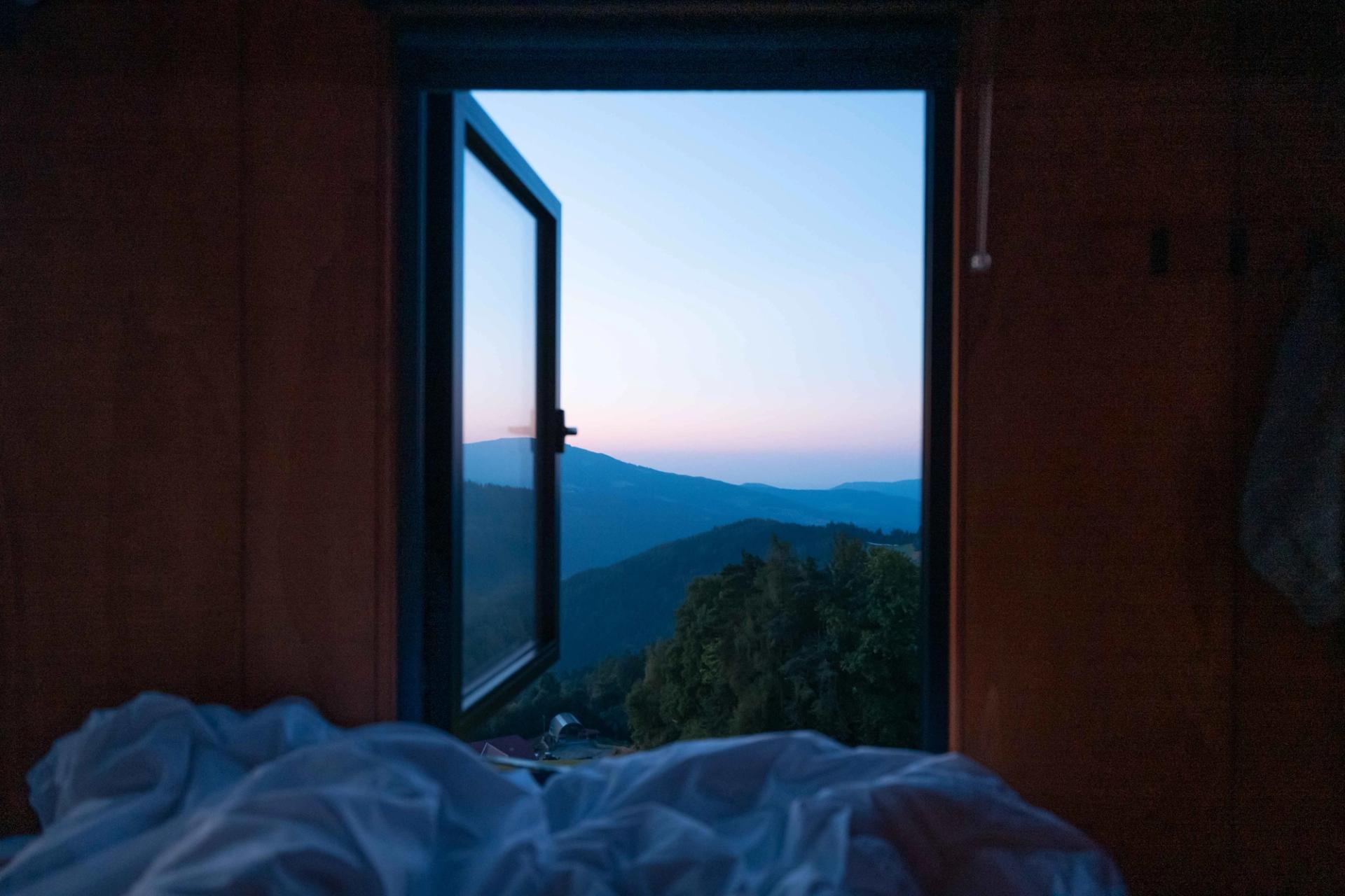 Du wendest dich dem Fenster zu und lässt deinen Blick schweifen. Während sich deine Augen langsam an die Dunkelheit gewöhnen, tauchen immer mehr Sterne auf, sogar ein kleiner Umriss der Umgebung wird sichtbar. Und obwohl dich die unendliche Weite fasziniert, überkommt dich eine angenehme Taubheit. Deine Gedanken verlangsamen sich, bis du schließlich sanft in einen tiefen Schlaf abdriftest.