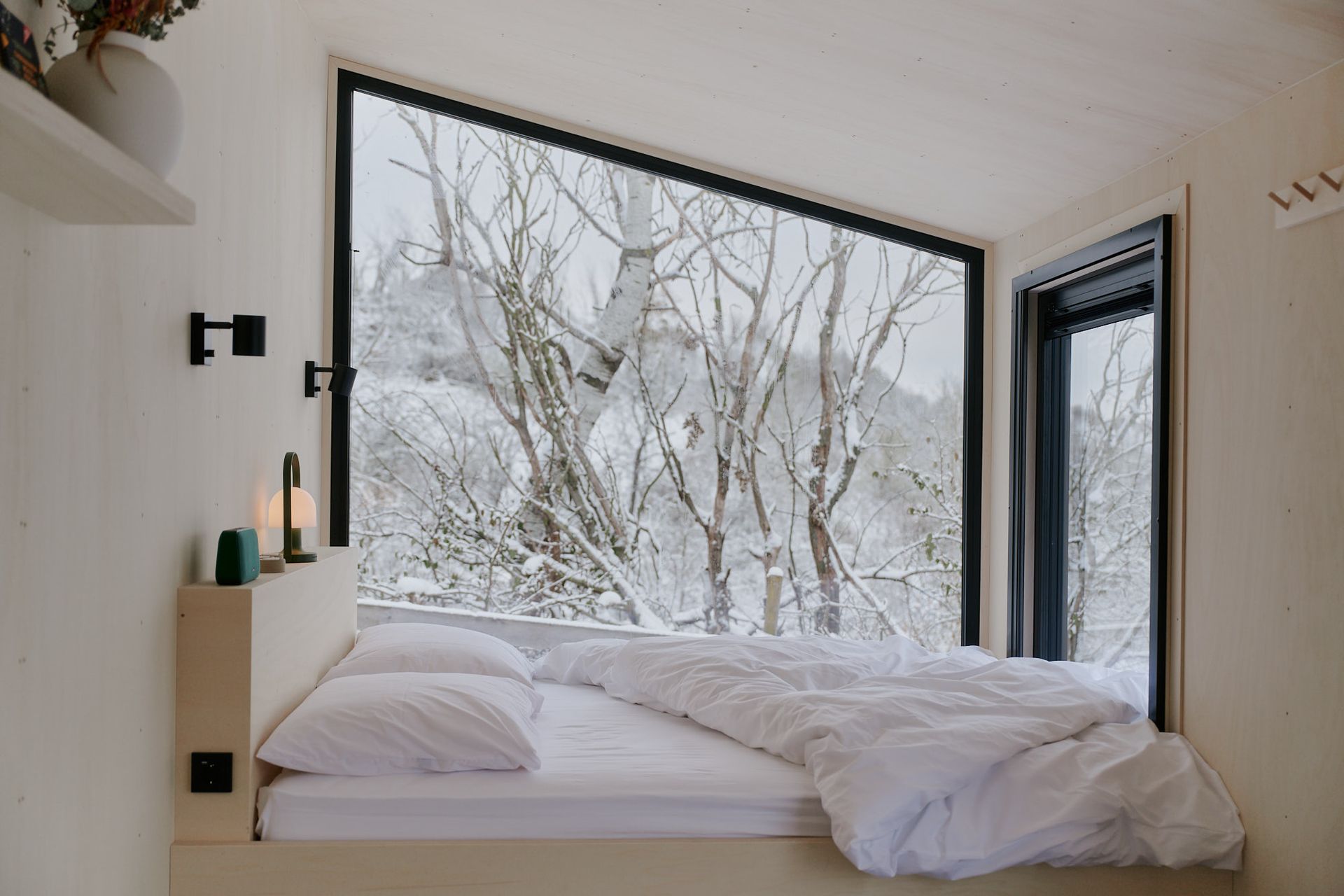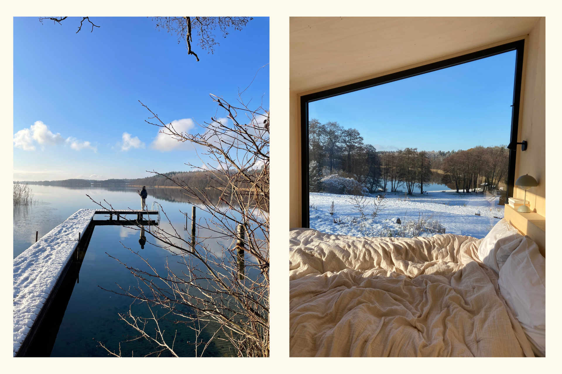 Manchmal reichen diese kleinen Fluchten nicht aus – dann ist es Zeit für eine richtige Winterauszeit. Egal ob ein kurzer Trip am Wochenende oder doch ein längerer, wohlverdienter Urlaub – Hauptsache weit weg vom Alltag, in einer Cabin irgendwo im Nirgendwo. Mit einem knisternden Ofen, an dem du nach einem langen Spaziergang über frostige Wiesen die Füße wärmen kannst. Eingekuschelt vor einem Panoramafenster mit Blick auf die verschneite Landschaft, mit der liebsten Person um sich herum oder nur mit sich selbst und der Stille. Wer bewusst Zeit allein verbringt, gewinnt Raum für Reflexion und Selbstbeobachtung: Gedanken sortieren, Pläne schmieden oder einfach nur: Sein. Die Jogginghose, die längst hätte aussortiert werden müssen, und Omas gestrickte Socken bekommen ihren großen Auftritt, ganz ohne Gedanken daran, wie man aussieht.