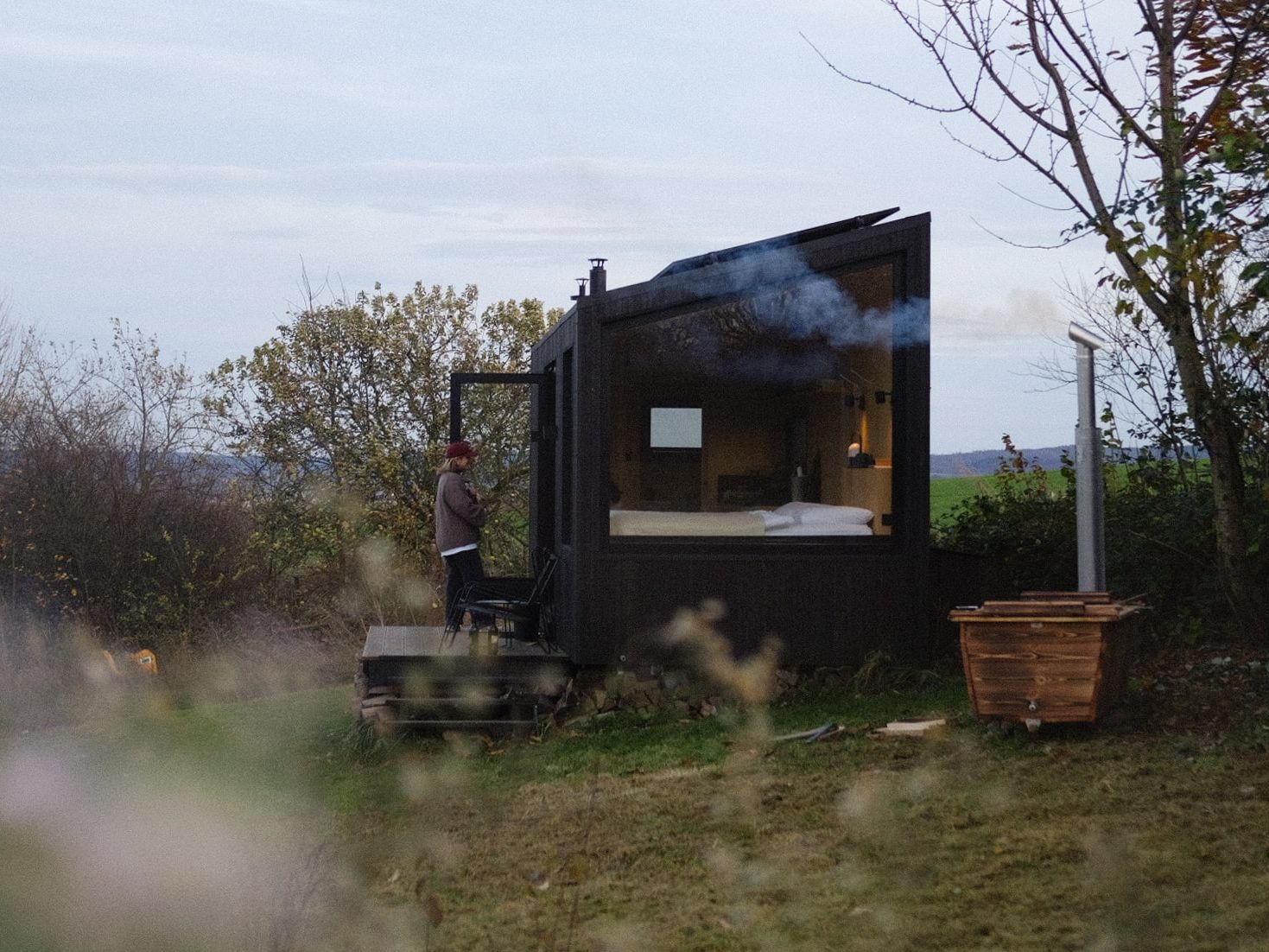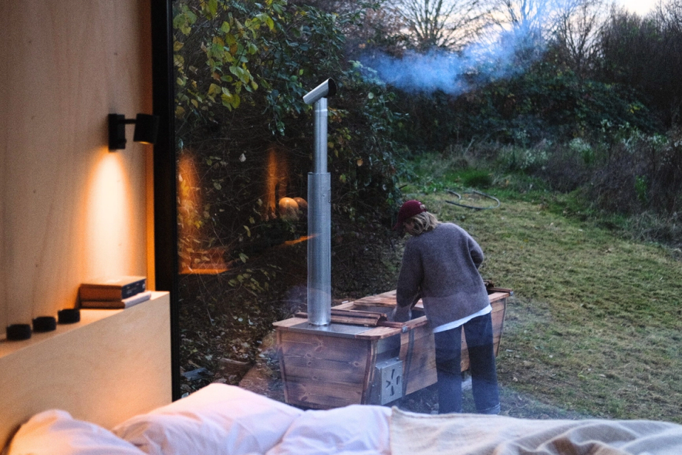 An einer der drei Cabins erwartet dich ein besonderes Highlight: eine private Outdoor-Badewanne von Feuerwasser aus duftendem Kiefernholz, gleich neben der Cabin. Hier kannst du die Seele baumeln lassen und Tiefenentspannung genießen. Wirf den Holzofen an, spüre die wohlige Wärme auf deiner Haut und lass den Blick in die Ferne schweifen – oder zähle die Sterne am Nachthimmel. Buchst du die Cabin mit der Badewanne, ist die Nutzung in deinem Aufenthalt inklusive.