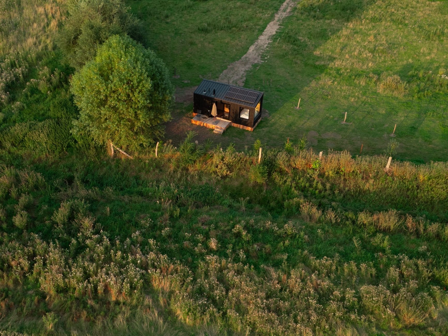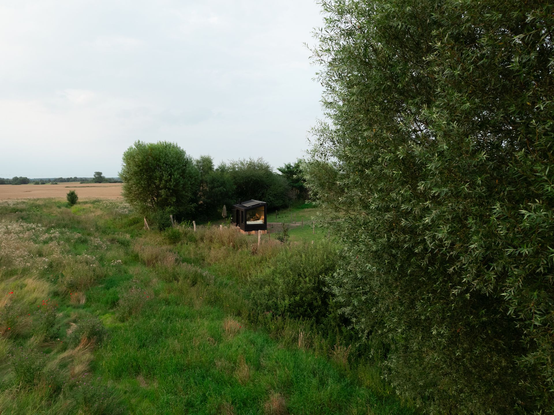 Etwas versteckt am Rande einer großen Weide gelegen, die zu einem Biohof gehört und umgeben von duftenden Kräuter- und Gemüsebeeten sowie Schafen, Pferden und Hühnern.