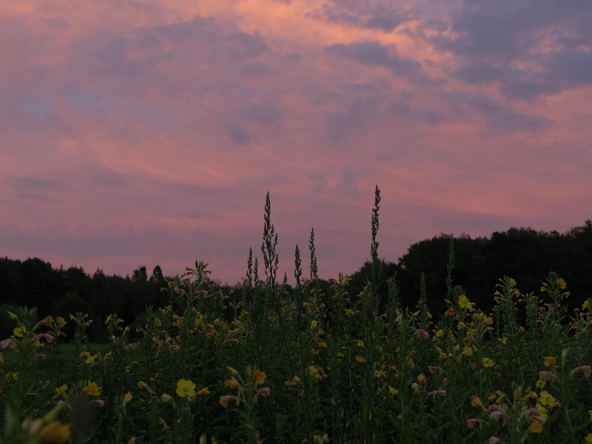 Am Rande einer großen Weidefläche gelegen, auf der gelegentlich Rinder grasen, schaust du über einen kleinen Fluss hinweg auf den gegenüberliegenden Wald.