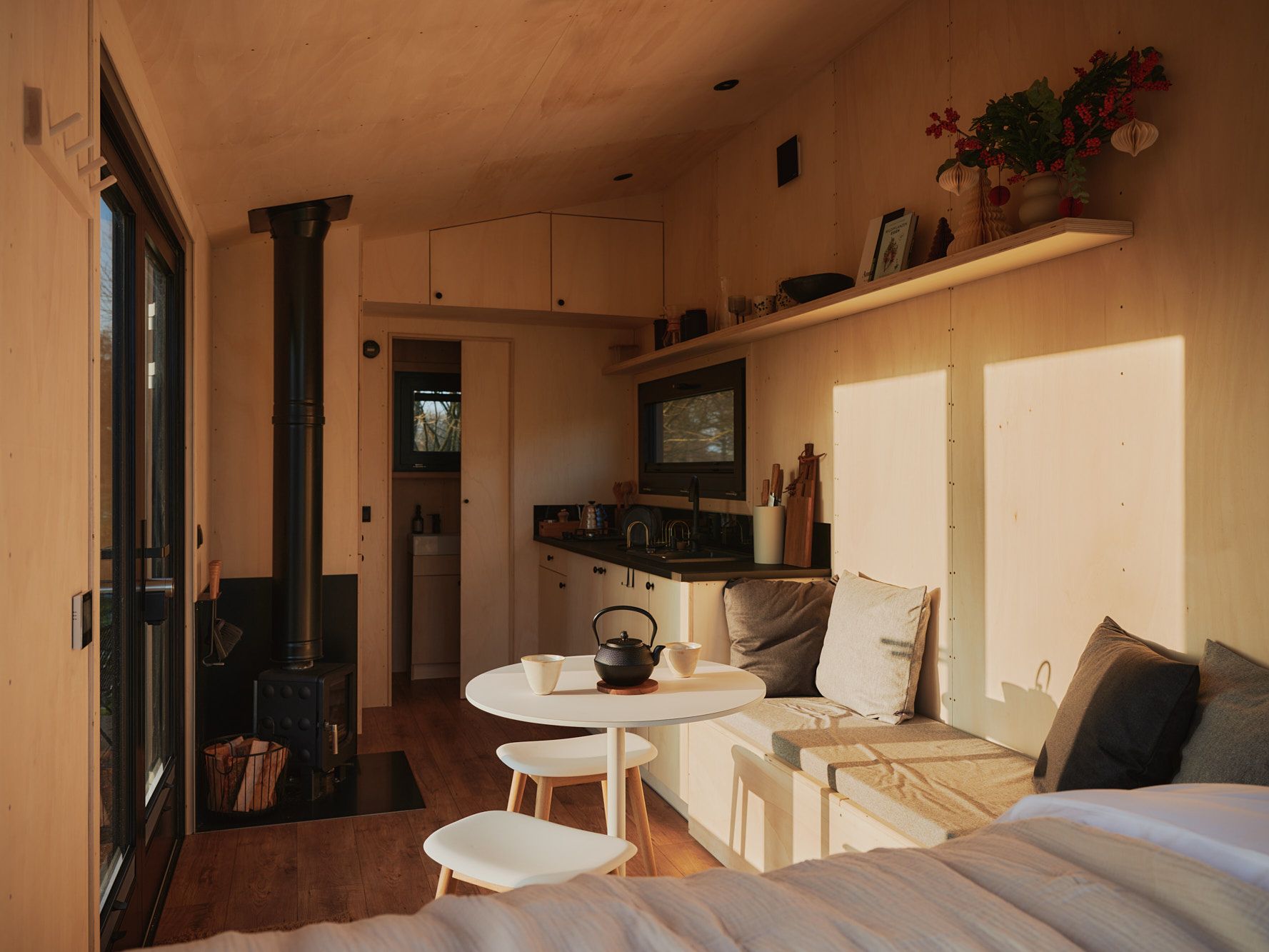 In unseren Cabins findest du alles Wesentliche für deinen Aufenthalt in der Natur. Die Cabin ist mit einem Holzofen, gemütlichen Decken, einer Wärmflasche und Tee ausgestattet, mit denen du dich auch an kälteren Tagen warm halten kannst – wir empfehlen, zusätzlich warme Kleidung wie kuschelige Socken, dicke Pullover und einen Regenmantel für Regentage einzupacken. Denke außerdem bitte an festes Schuhwerk und Gummistiefel, da die Wiesen und Felder ringsherum in den kühlen Monaten feucht und matschig sein können. Extra-Ausstattung wie Fahrräder, Grill oder Feuerschale kannst du (je nach Standort) hinzubuchen.