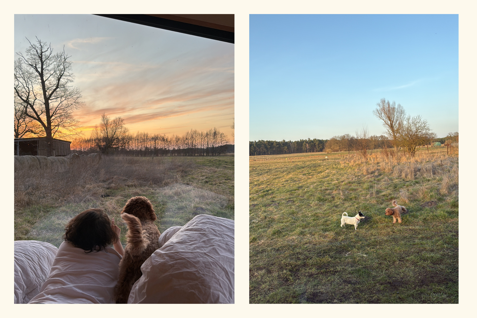 "Hey dear team, this is about Benny, the dog from Eichenhof. We traveled with our poodle mix, Leffe. Benny and Leffe saw each other and apparently fell in love. Benny didn’t take his eyes off us; he sat by the door at all times of the day and even took his nap in our bed. We cooked with him and went for walks with him. Benny was always there. When we left, Leffe was heartbroken and whined for many days afterward. Having Benny around was absolutely wonderful!!! One of the sweetest friendships was formed here." – Beatrice, (@cala.marie)