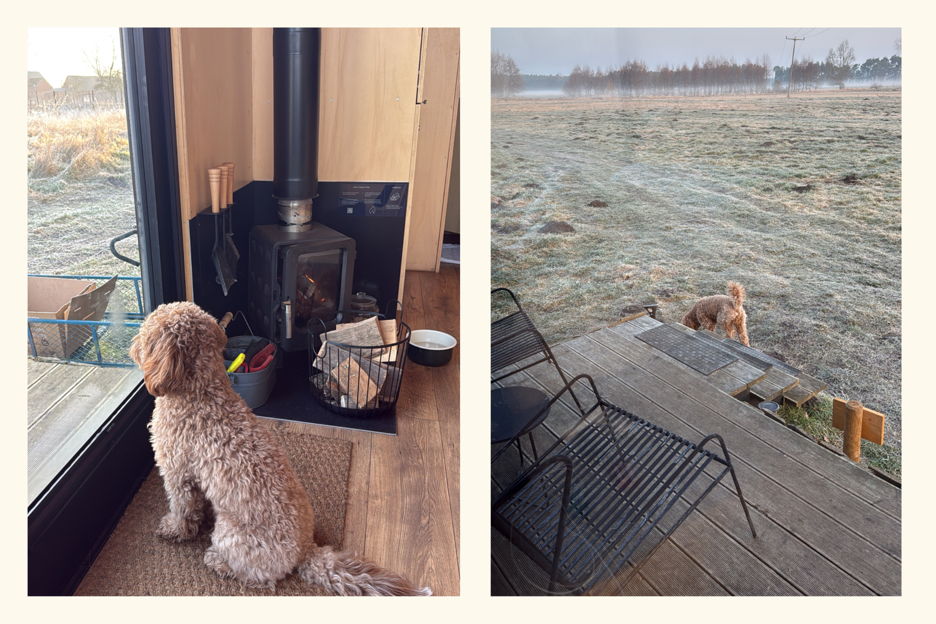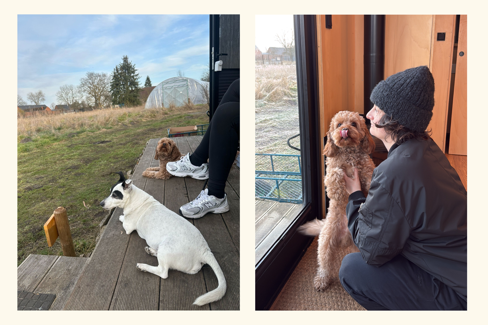 We make sure our dog gets enough exercise before the getaway in a cabin, and that the cabin isn’t located right next to a horse paddock, because he might rush straight in. So far, we’ve simply coordinated with the owners of the paddocks to know when the animals are outside and when we should keep Leffe on a leash. We also pay attention to activities in the area that our dog would enjoy – for example, a lake where dogs are allowed.