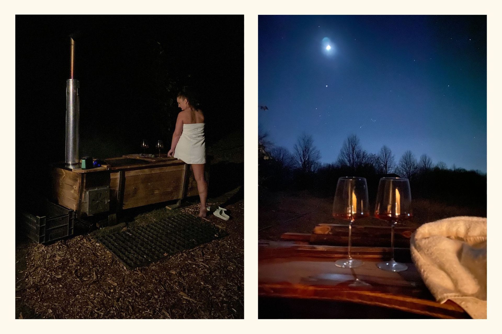 Ending the day together under the full moon and starry sky in the heated outdoor bathtub. Simply a 12/10 moment!