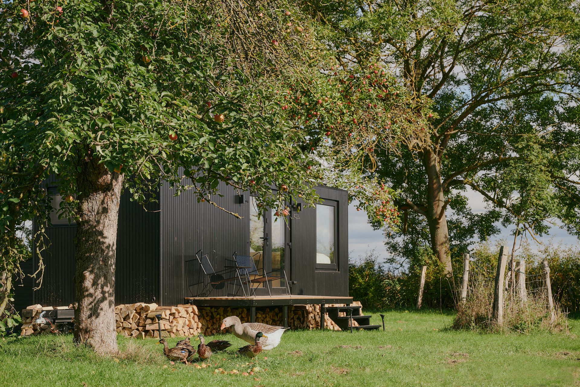 For those who occasionally prefer four-legged friends to two-legged ones, our partners offer a range of experiences, such as alpaca walks, farm tours, or simply a visit to the pasture with various fluffy neighbors. There have even been instances where curious chickens have wandered into our cabins or the farm dog has settled in the shade of a patio umbrella. One guest couple even adopted two kittens! These are the moments when we feel we've truly brought city and country a bit closer together. But perhaps all it takes for you is the sight of golden rapeseed fields and the sound of a rooster crowing in the morning to know that the pace of life around you has changed to farm time.