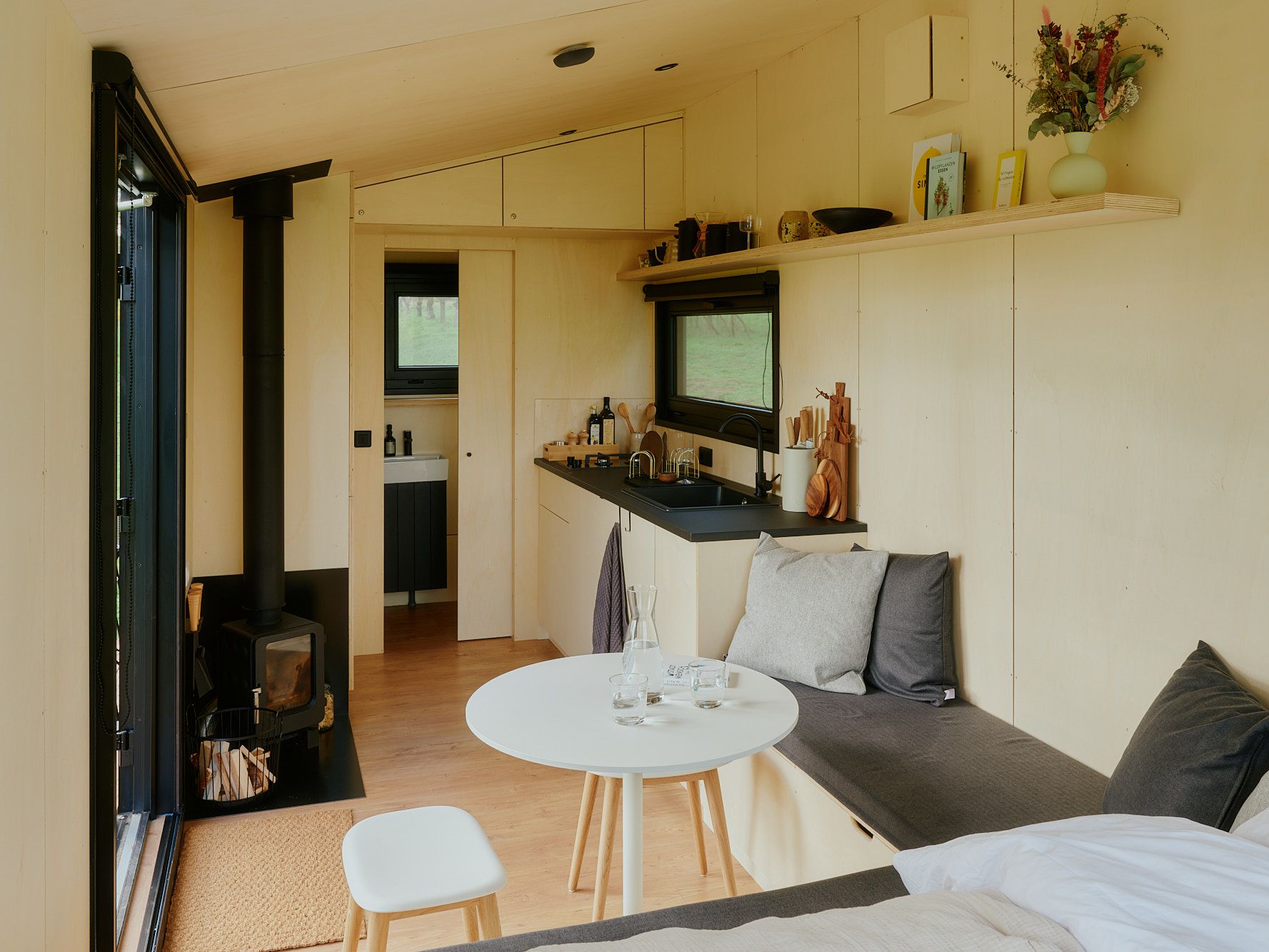 In our cabins, you'll find everything essential for your stay in nature. The cabin is equipped with a wood stove, cosy blankets, a hot water bottle, and tea to keep you warm even on colder days. We recommend packing warm clothing like snug socks, thick sweaters, and a raincoat for rainy days. Additionally, please remember to bring sturdy footwear and rubber boots, as the meadows and fields around can be damp and muddy during the cooler months. You can add extra amenities like bikes, a grill, or a fire bowl (depending on the location).