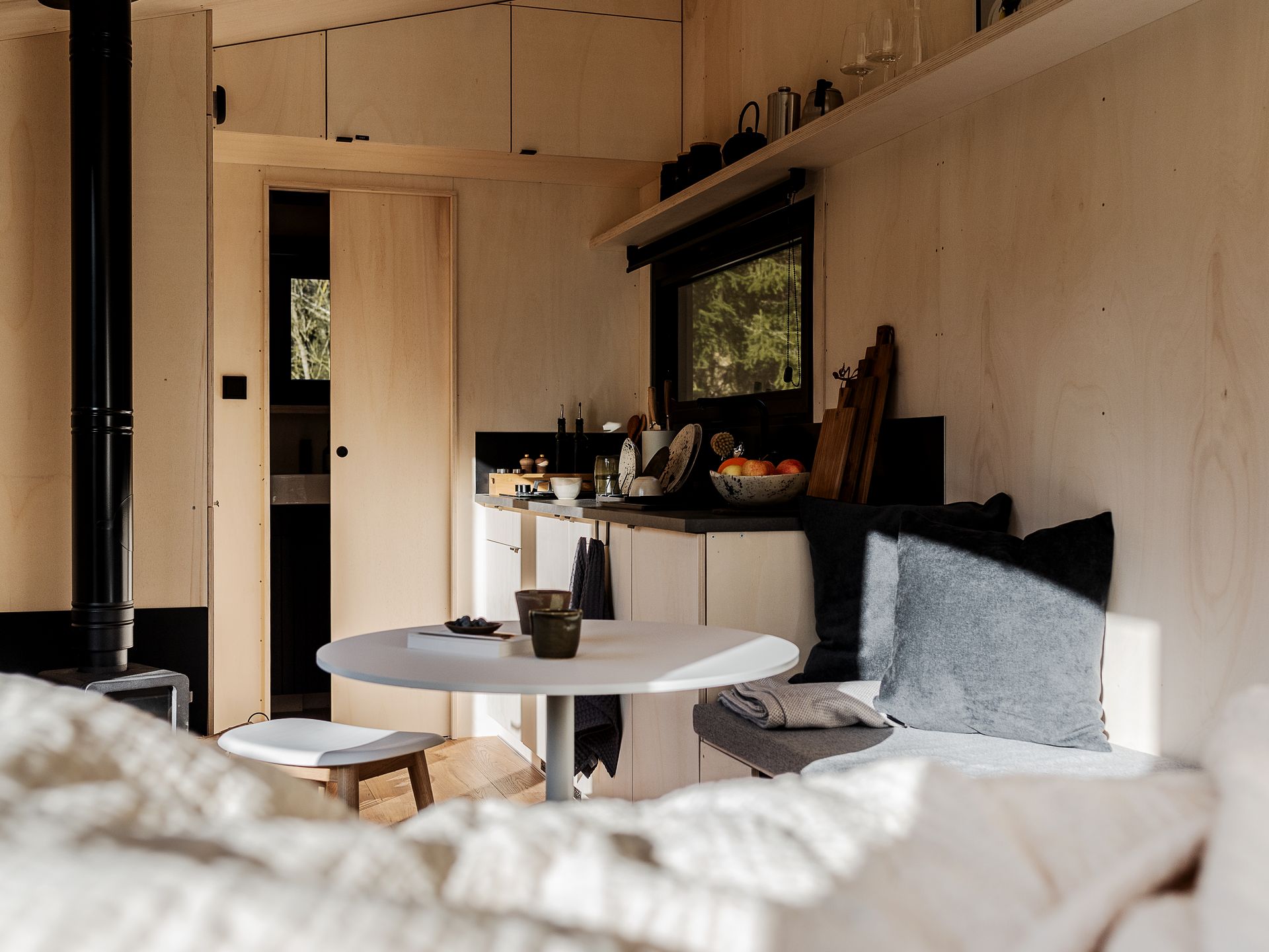 In our cabins, you'll find everything essential for your stay in nature. The cabin is equipped with a wood stove, cosy blankets, a hot water bottle, and tea to keep you warm even on colder days. We recommend packing warm clothing like snug socks, thick sweaters, and a raincoat for rainy days. Additionally, please remember to bring sturdy footwear and rubber boots, as the meadows and fields around can be damp and muddy during the cooler months. You can add extra amenities like bikes, a grill, or a fire bowl (depending on the location).
